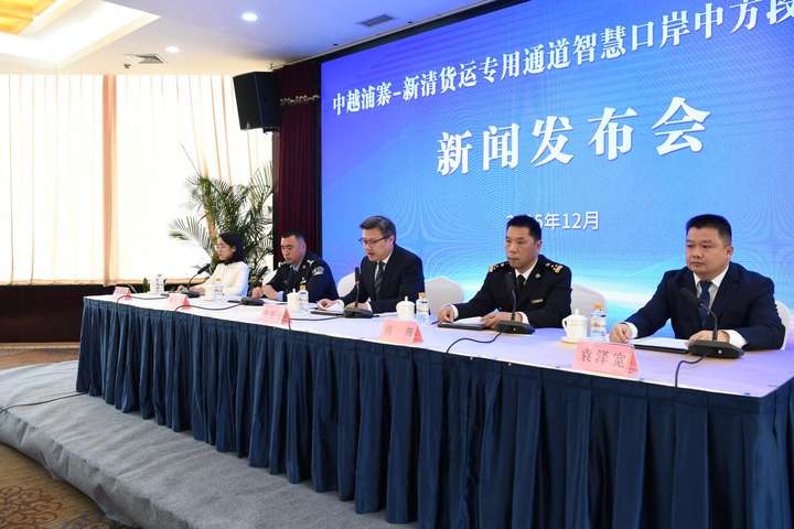 12月17日,广西凭祥市举行新闻发布会,宣布中越浦寨-新清货运专用通道智慧口岸中方段将于本月19日投入运行。
