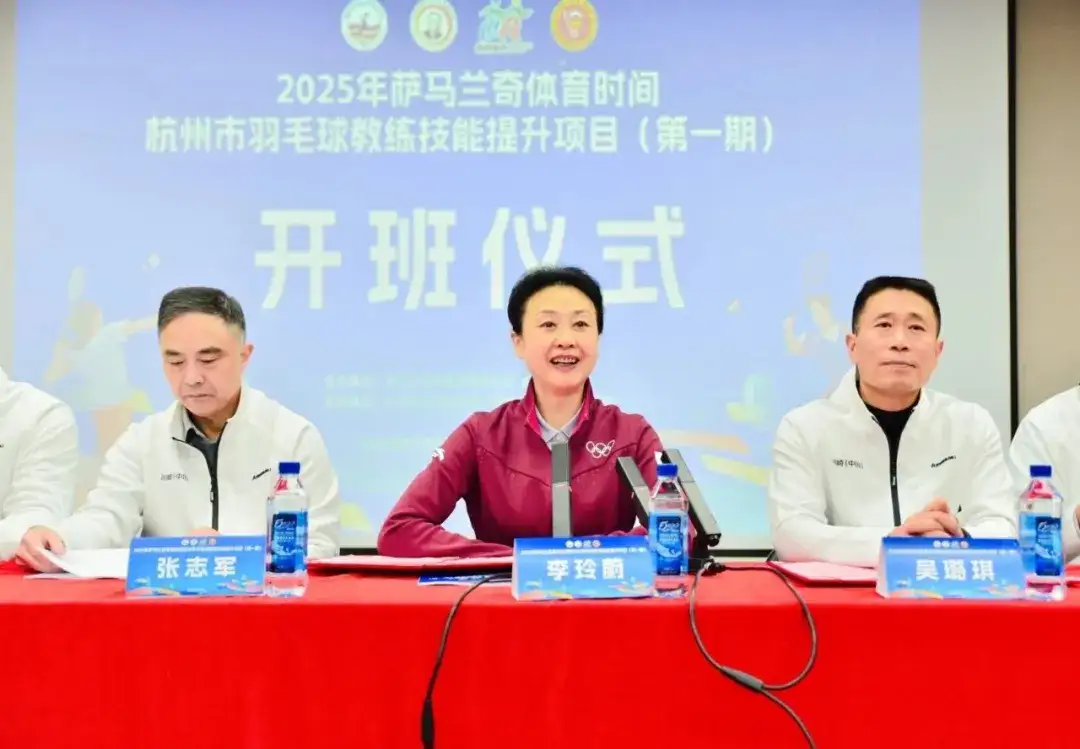 2025年12月17日,由萨马兰奇体育发展基金会、杭州市体育局联合主办的2025年“萨马兰奇体育时间”杭州市羽毛球教练技能提升项目(第一期)开班仪式在杭州师范大学仓前校区举行。国际奥委会执委、中国奥委会副主席、萨马兰奇体育发展基金会理事长李玲蔚,杭州市体育局副局长吴璐琪,杭州师范大学原党委副书记张志军,杭州师范大学体育学院(杭州足球学院)院长周武,萨马兰奇体育发展基金会副秘书长方静怡,授课专家及96名参训教练出席仪式。