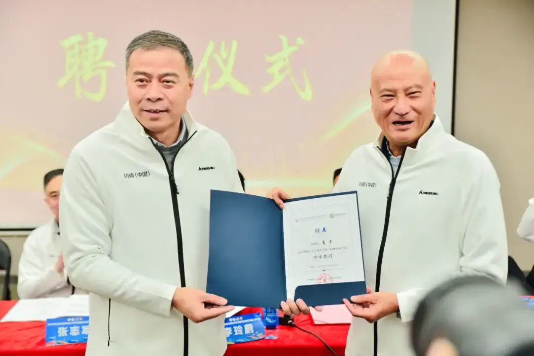 仪式现场,杭州师范大学体育学院(杭州足球学院)院长周武代表学院,向前国羽主教练李矛颁发聘书,正式聘请其为杭州师范大学体育学院(杭州足球学院)客座教授。