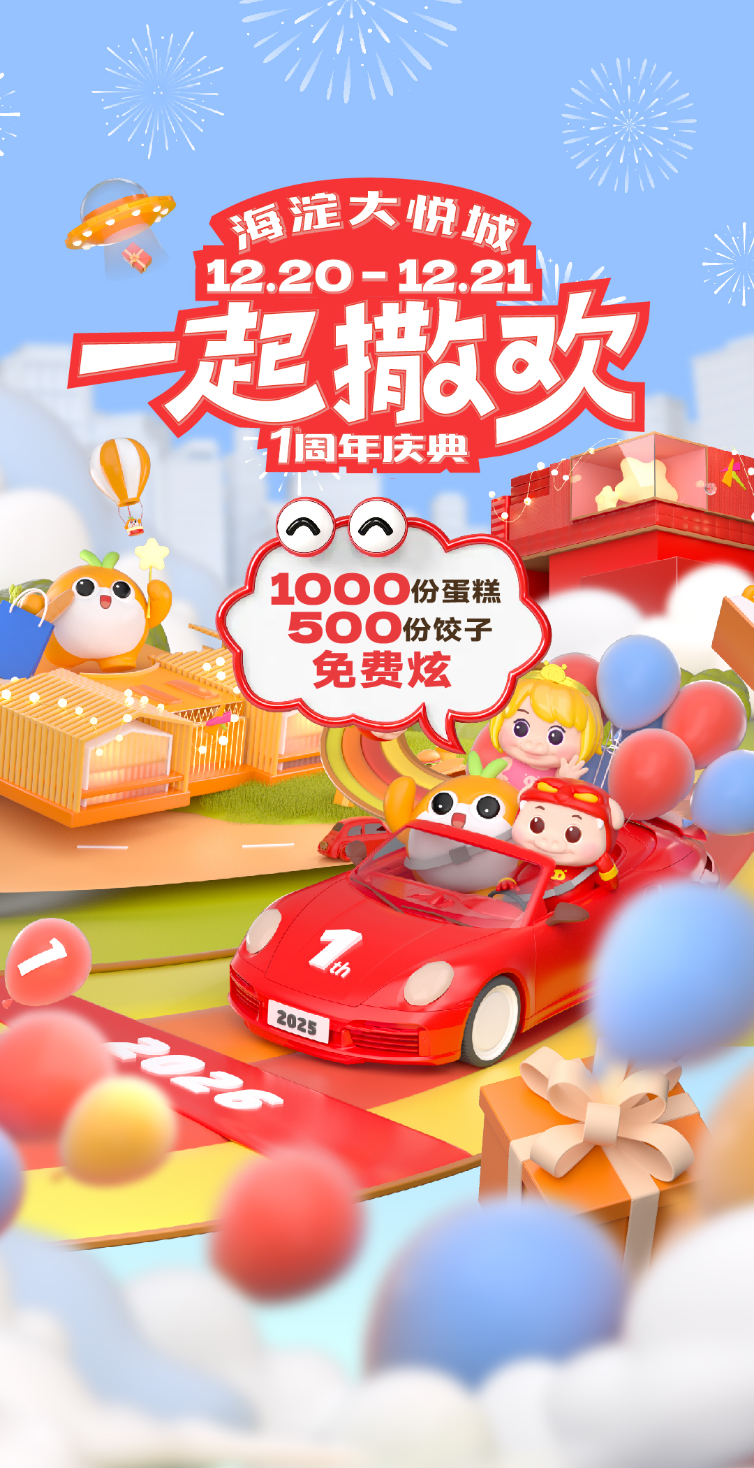 山海同庆,悦启新章--海淀大悦城开业一周年庆典暨“一起撒欢”主题狂欢季即将盛大启幕2025年12月,正值岁末年初、辞旧迎新之际,北京海淀区商业文化版图上的璀璨新星——海