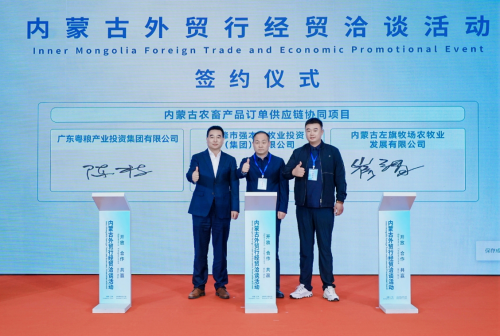 供应链合作方面,广东粤粮产业投资集团有限公司与赤峰市强本农牧业投资(集团)有限公司、内蒙古左旗牧场农牧业发展有限公司就农畜产品订单式长期稳定供应达成合作意向。内蒙古蒙特好实业有限公司与广东省农业科学院孵化器(华南A谷)孵化内蒙古农牧食品企业在粤营销机构。