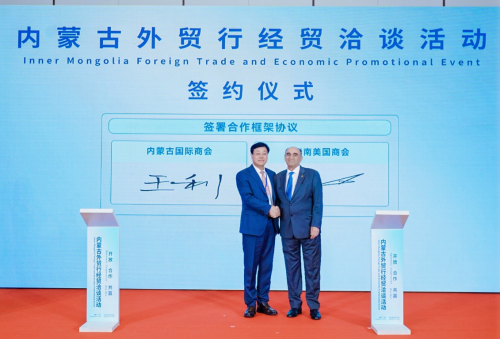 商会联动方面,内蒙古国际商会与华南美国商会携手支持双方会员拓展国际市场、寻求投资机会、协同发展共赢。