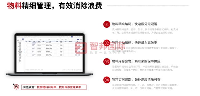 制造车间的高效运转,离不开设备、质量、库存等要素的协同联动。智邦国际MES通过设备全生命周期管理、全周期质量管理、动态库存管理三大模块,实现了生产要素的“智能交响”,让每一台设备、每一件产品、每一份物料都能在系统中“开口说话”。