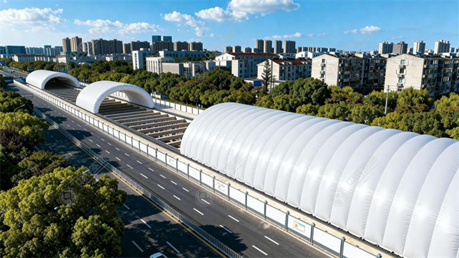 气肋气膜的应用价值远不止于文旅领域。在工业、文体等场景中,均展现出同样出色的适应性。凭借可达近100米的超大跨度无柱空间,可轻松应对文体场馆、移动厂房、临时仓储、环保封闭作业等需求。