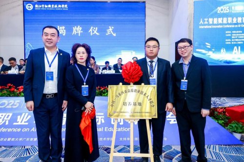 开幕式上,还举行了“中韩创新人才联合培养基地学校”“浙江省人工智能学会AI示范服务站”“浙江省人工智能学会常务理事单位”授牌仪式,这些牌匾不仅代表着荣誉,更象征着责任与新的起点,标志着浙江宇翔职业技术学院在人工智能赋能职业教育领域迈出了坚实的合作步伐。接着,还举行了“海康威视智能视觉产业学院”“用友新道数智产业学院”“开源鸿蒙高等工程师学院”“优必选具身智能机器人产业学院”和“安吉人工智能产教融合联盟”落户浙江宇翔职业技术学院揭牌仪式。创新的平台需要实体的承载,合作的愿景需要学院的落地。这一系列重要产业学院的揭牌,这标志着该院的产教融合迈向了更深层次、更广领域,必将有力推动教育链、人才链与产业链、创新链的有机衔接。