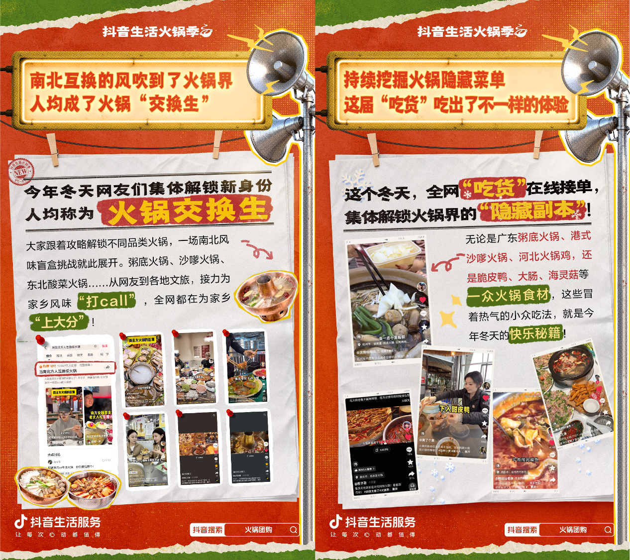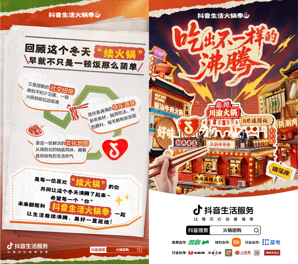 注意到大家高涨的消费需求,抖音生活服务以「不一样的沸腾」为主题,今年继续开启了「抖音生活火锅季」活动。11 月 7 日至 12 月 21 日期间,通过在线上携手明星达人探店种草以及开启各类跨界合作,持续打造话题热度,在线下打造「多城同沸」火锅活动等形式,带动大家一起沸腾「开涮」,强化活动参与感,把「续火锅」变成了这个冬天最沸腾最温暖的记忆。