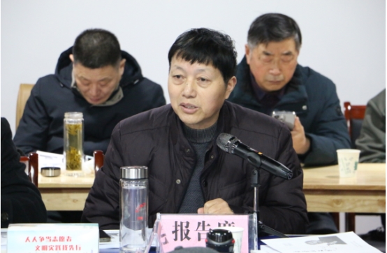 东台市杂文学会会长周稀银报告学会工作。
