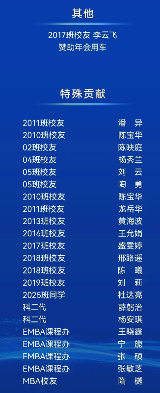 特别感谢以下向2025年年会捐赠、赞助、及特殊贡献的校友们。