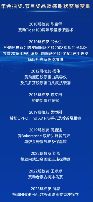 年会的圆满成功,源于每一位校友的鼎力襄助。大家或慷慨解囊,或贡献物资,或亲力亲为,汇聚成一份沉甸甸的心意。这份深情厚谊,正是校友会砥砺前行最坚实的根基。