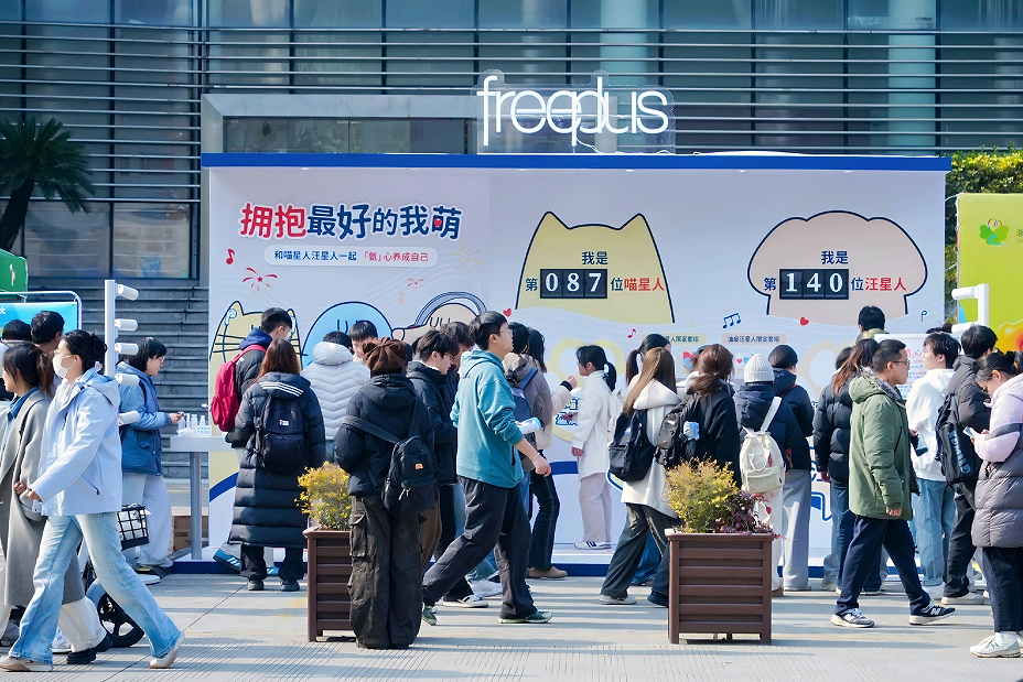 作为本次青春歌会的品牌挚友,freeplus芙丽芳丝持续深耕年轻圈层, 以“拥抱最好的我萌”为主题,为辛勤劳碌一年的大学生们送上了年末慰藉与暖心鼓励。展位现场,芙丽芳丝还特别呈现了与艺术家CDR联名的 #我萌超棒的 第三弹萌宠主题限定品,为学生带去了“像猫猫一样盈润不紧绷”的干皮洁面水乳套组,以及“像狗狗一样轻快无油虑”的油皮洁面水乳套组,直击冬日护肤痛点。展位现场设置的大型毛绒抱抱装置更是吸引了众多学生参与互动,在欢声笑语中和喵星人汪星人一起卸下烦恼,勇敢养成自己,这也成为了本次旅途中备受喜爱的疗愈驿站。