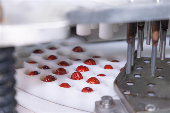 解决了“干净”的痛点后,好想你将目光聚焦于“食用便捷性”的深度优化。针对老人、儿童及咽喉敏感人群“吐核不便”“担心卡喉”的痛点,好想你研发出撞针去核和套管去核专利技术,推出去核红枣产品。该技术通过精准定位枣核位置,在不破坏枣肉结构的前提下实现高效去核,解决了传统手工去核效率低、枣肉破损严重的问题。随后,针对追求极致口感的消费者,好想你进一步升级推出去皮去核枣,通过物理去皮工艺,打造软糯的食用体验,覆盖了婴幼儿、消化功能较弱等更广泛的消费群体。