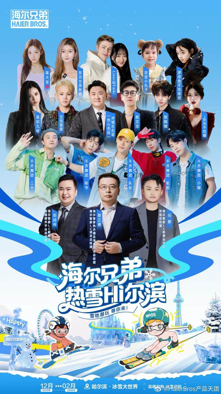 海尔兄弟还将展现自己的冲浪速度,在12月25-28日联合众多顶流博主与大家一同互动玩耍!冰城文旅大使@冰城左右哥 将与海尔智家LC新事业平台市场总经理任鹏破次元联动开展冰雪大世界专场导览,带领粉丝打卡热门机位、参与互动游戏;美妆博主@是初九呀 将带着安陵容仿妆复刻《甄嬛传》经典剧情,与海尔兄弟一同冰嬉……快来冰雪大世界温暖方舟偶遇达人团,解锁更多惊喜吧!