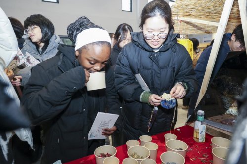 作为本次活动的“铁粉”,来自喀麦隆的留学生马克连续三天“全勤”打卡集章,带着自制香囊和剪纸满载而归。“虽然点茶有点难,但我特别喜欢!”来自俄罗斯的留学生安娜小心翼翼地搅动茶筅说道。哈萨克斯坦留学生阿依努尔则举着刚剪好的“囍”字回应:“真是太有趣了!”