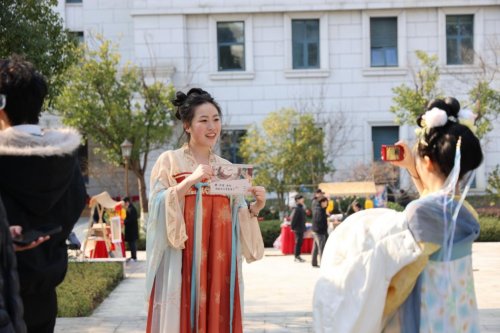 汉服体验区内,学子们感受唐制襦裙、宋制褙子、明制马面裙,学习揖礼、簪花,在镜头前定格千年风华。西语学院学生张景怡感慨:“这不是简单的体验,而是一场与历史的深度对话,让我们在沉浸中感受文化传承的温度。”