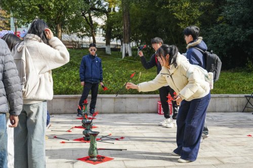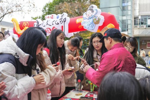 文旅学院学生董文欣在体验跳竹竿舞后兴奋地表示:“没想到在学校里能体验跳竹竿舞,节奏欢快,真切感受到了民俗文化的魅力。”刚参加完嗒嗒球比赛的徐茂同学说:“这项活动源自传统民间游戏,简单有趣,边玩边锻炼,轻松释放压力,也拉近了我们与传统文化的距离。”商学院、创业学院学生陈欣则被现场氛围深深打动:“浓浓的年味和喜庆让我们提前感受到新春的温暖,也唤起了我对家乡习俗的回忆。”