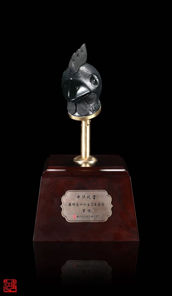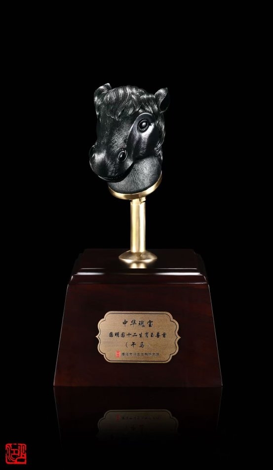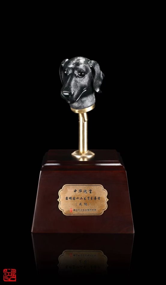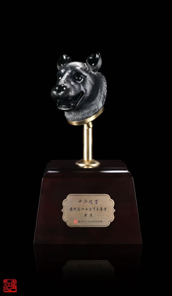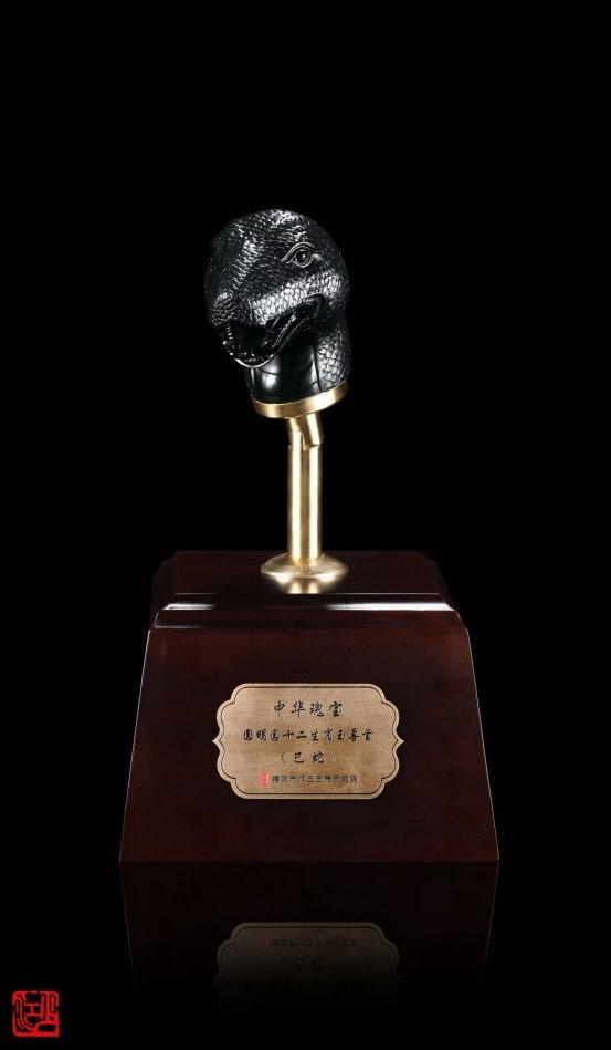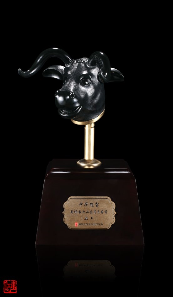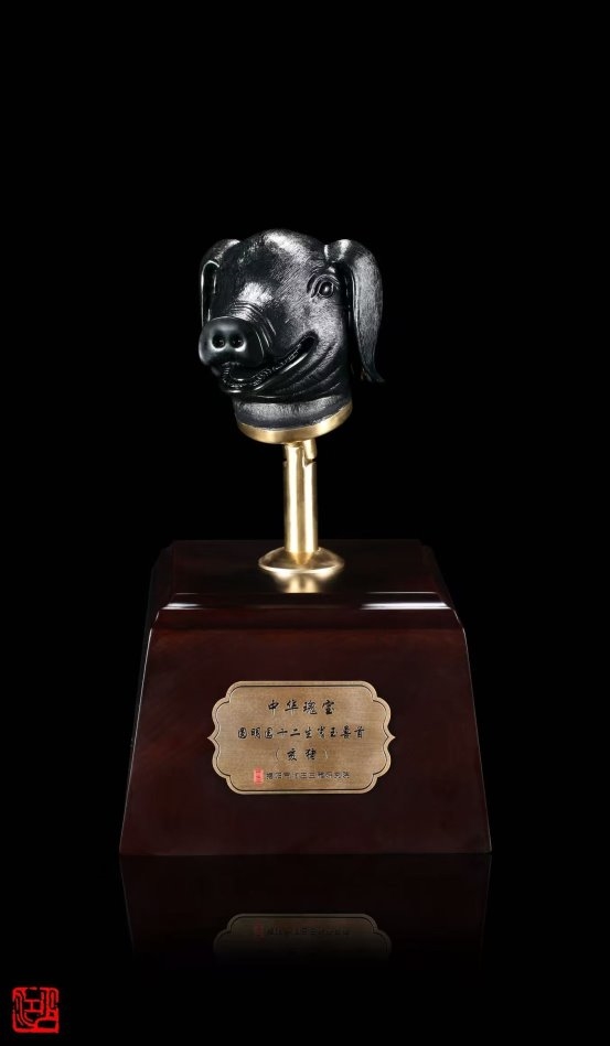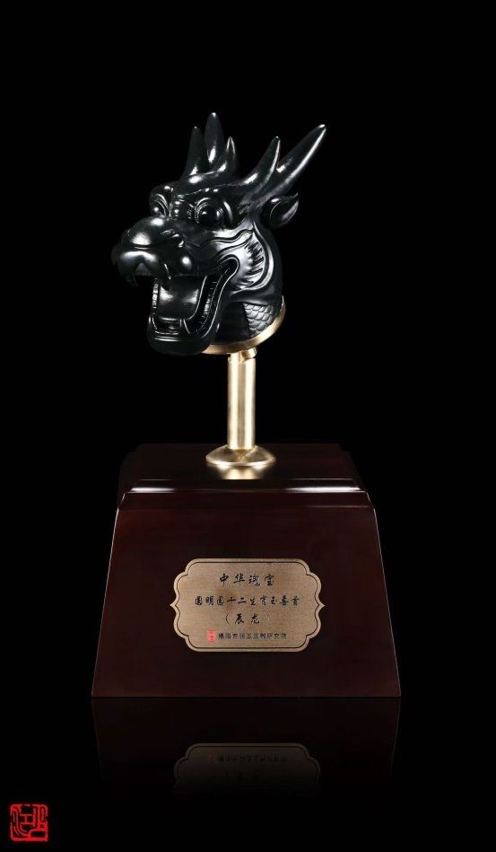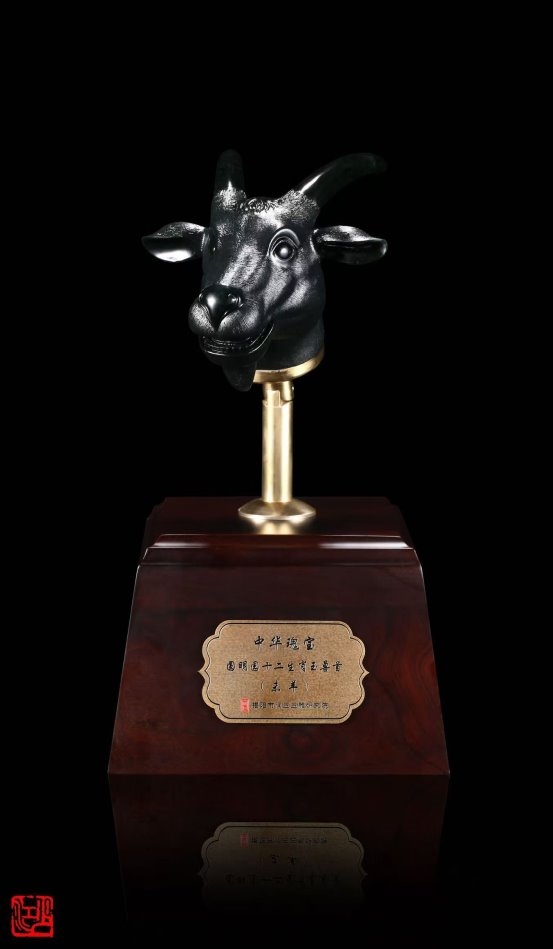 而真正让林少江声名远扬的,是其《中华瑰宝·十二生肖玉兽首》系列作品。以圆明园大水法十二兽首为灵感,他选用上品黑碧玉精心雕琢,不仅还原了兽首的历史神韵,更在底座融入圆明园残柱的纹理设计,寄托着对民族文化瑰宝的珍视与家国情怀。这件作品一举斩获中国工艺美术文化创意奖特别金奖,并获得国家外观设计专利,成为非遗技艺创新的典范之作。
