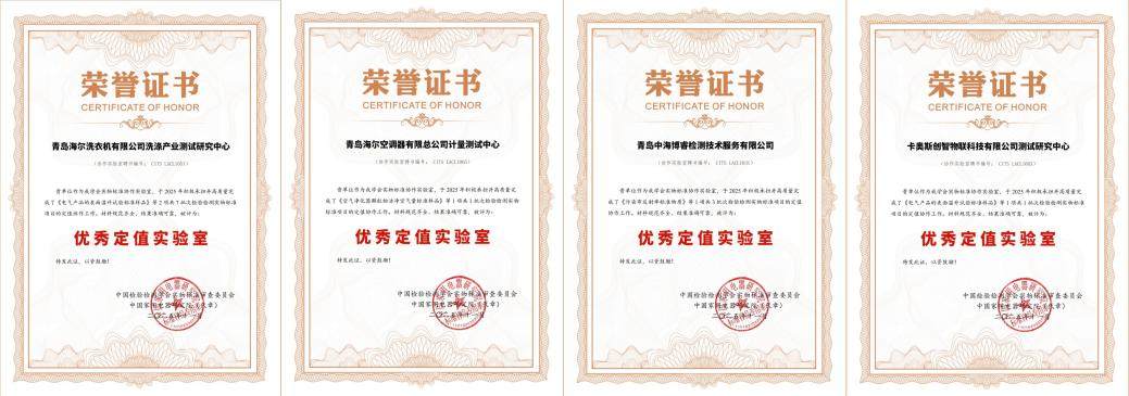 海尔作为学会首个“检验检测实物标准共研试点单位”,在学会2025年实物标准评选工作中共荣获5项“实物标准优秀工作者”、4项“实物标准优秀定值实验室”称号,数量均为行业第一。