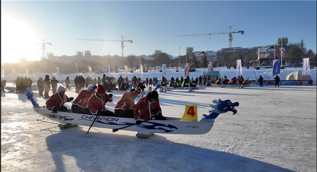 此次举办的冰上龙舟项目比赛作为龙舟运动的创新,在保留了传统龙舟运动的技巧性与竞技性的同时,又创新性地将比赛场地从水上延伸至冰面,是一项集竞技性、团队性、娱乐性于一体的全新冬季冰雪运动。