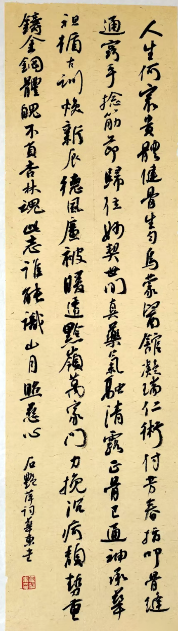 黔地起嘉木,金叶覆云椽。休言黔北迁客,仁术即乡关。曾炼赤河丹露,更采乌蒙霞色,根脉与天连。瓷石镌三诺,清韵满华轩。 秉诚信,持妙术,立身坚。别开新境,橘圃银杏作瑶笺。忽见善泉飞渡,化作春霖广泽,病患展欢颜。我亦岐黄客,长揖礼高贤。