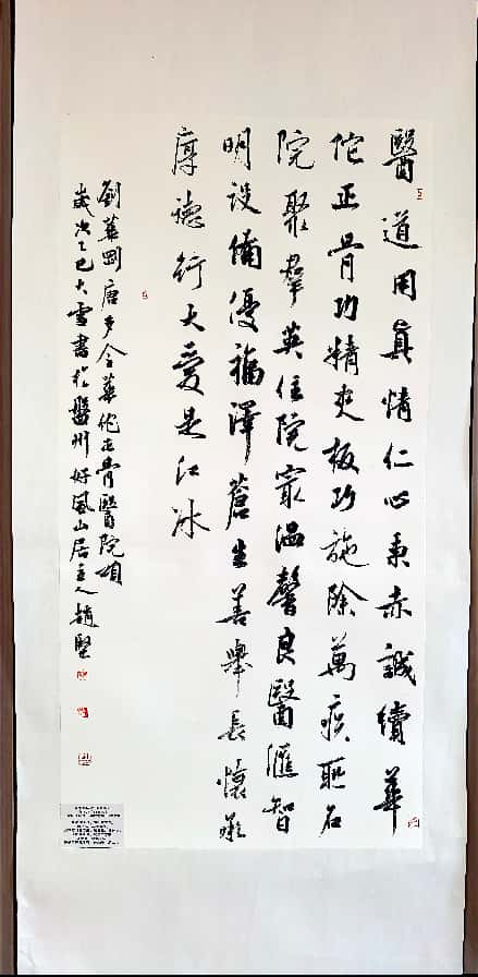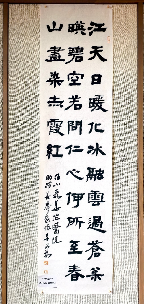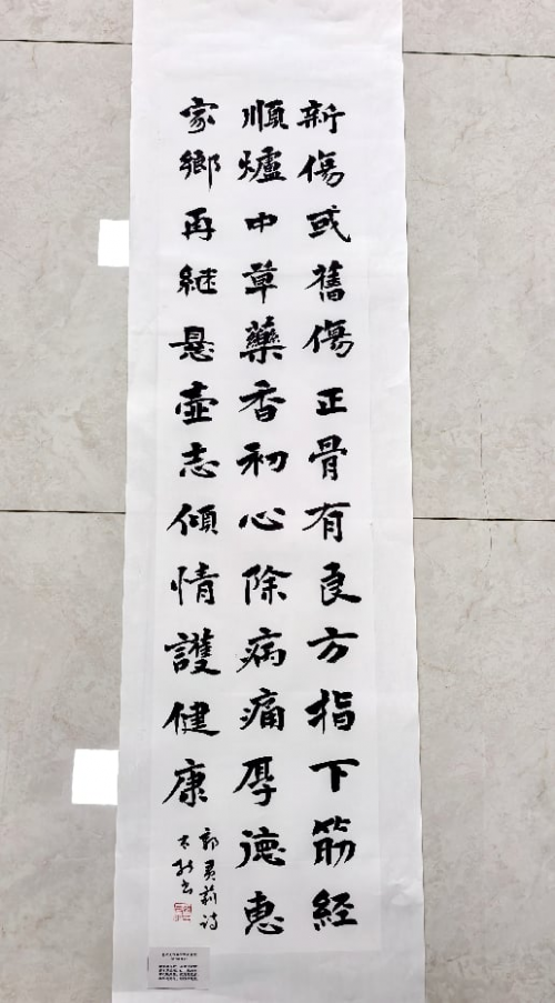 六盘水华佗正骨医院江冰董事长表示:中医药文化和书法文化同为我国的国粹,书法艺术和中华医术的有机融合,彰显了美美与共的中华文化神奇境界。本次融合活动,对我院而言,有助于打造独特文化品牌,对文化传承来说,则拓宽了诗词楹联的传播渠道,使其更贴近现代生活。这种融合不仅美化了医疗环境,更通过文化浸润增强了患者的信任感和归属感,我们将会把”书法大家“的支持化作继续前进的动力,遵循中医药发展规律,传承精华,守正创新,充分发挥中医药防病治病的独特优势和作用,让中医发扬光大!