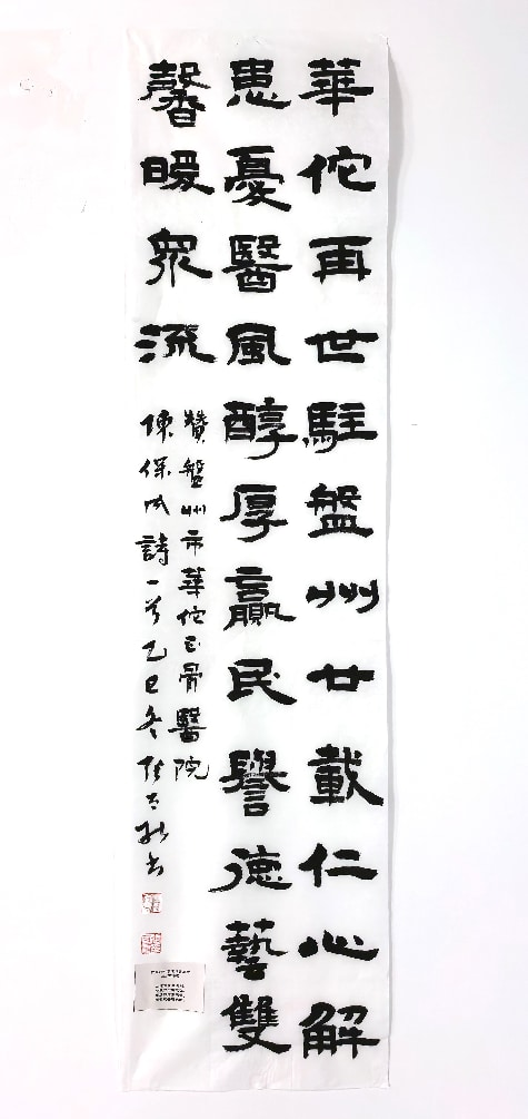 扶伤救死数华佗,医术精深德可歌。正骨不分贫与富,闻名干里锦旗多。