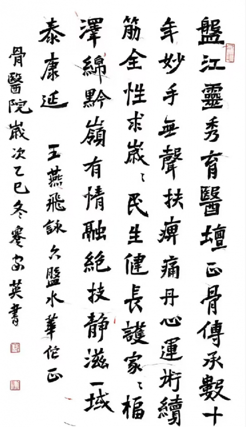 杏林分得术尤工,接骨连筋若续虹。 腕底回春千络畅,指间消痛九霄通。 仁怀自可承星月,笃志何曾避雨风。 橘井泉香流不尽,岐黄薪火耀寰中。