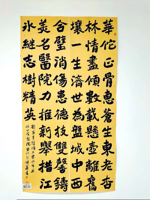 华佗医院誉八方,妙技通神救死伤。医者仁心堪典范,悬壶济世保安康。