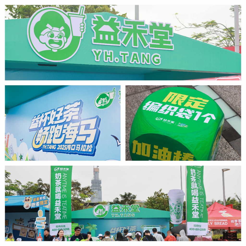 益禾堂的赛事服务将覆盖海口马拉松的核心环节。为跑者与观众带来充满趣味的互动体验。在12月25日至27日的赛前博览会现场,益禾堂展位化身“摇摇乐能量站”,通过快乐摇“益”摇游戏互动,为参赛选手与广大市民提供产品体验与互动服务,游戏吸引了多名前来领取参赛物资的选手及商圈顾客。品牌自媒体新增关注与会员数超4000+;赛事当天,益禾堂在半程马拉松终点-天空之山设置主题展位,邀请大家通过关注自媒体平台参与骰子摇奖的形式,赠送的品牌“显眼包礼品袋”在现场成为吸睛神器,引来多位现场参赛选手及志愿者的参与。益禾堂与主办方合作,在赛道12km旁设立专属补给&氛围应援点,现场赠送清爽解渴的清茶&零食系列,为奔跑的健儿加油助威,成为赛道上温暖而活力的风景线。