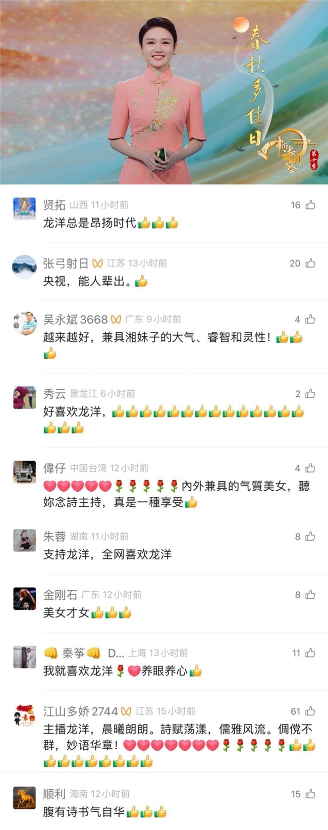从诗词大会的“学生”,到主持行业最高荣誉颁奖典礼并为同行开奖,龙洋完成了一次从学习到引领的循环。而这份来自专业领域的最高认可,也让她在《中国诗词大会(第十季)》的舞台更加从容自信,与观众共赴这场跨越十年的“诗词之约”,形成了一个完美的职业回环。