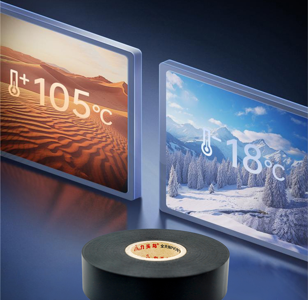 传统胶带在温度适应性上往往存在局限。九头鸟J93全天候PVC电气胶带通过配方优化与严格工艺控制,实现了宽广的温域适应性,可在 -18℃至105℃ 的极端温度范围内保持性能稳定。无论北方严寒冬季的户外作业,还是南方高温闷热环境或设备内部的热积聚区域,J93全天候胶带仍能保持粘性持久、基材柔韧,不开胶、不脆化,确保绝缘层长期有效,真正实现 “四季皆宜,南北通用”。