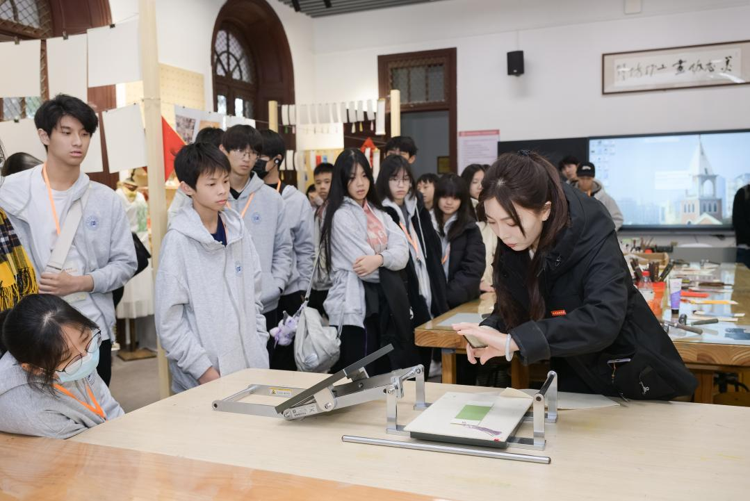 在美志楼的版画教室,香港学生与福州高级中学的同学一起参与了传统文化体验活动。在专业教师的指导下,大家亲手尝试版画制作,感受中华传统艺术的独特魅力。活动过程中,两地青年并肩协作、笑语不断,展现出青春共融、文化互鉴的生动场景。