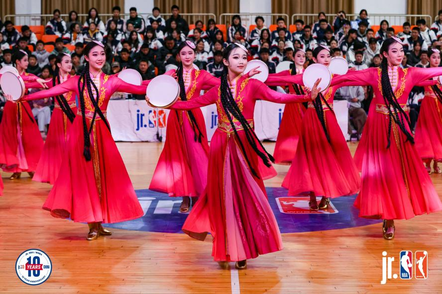 主客场制的决赛让两轮比赛热闹非凡,开场表演同样精彩纷呈,迅速点燃了现场的火热氛围,中场技巧挑战赛和节间互互动更是让观众沉浸式感受四川校园篮球魅力。恰逢赛事十周年,在决赛次回合宜宾一中主场举行了Jr. NBA十周年致敬活动,程强教练、贾莉教练等获赠十周年纪念T恤,以此感谢他们多年来对校园篮球的辛勤付出与见证。