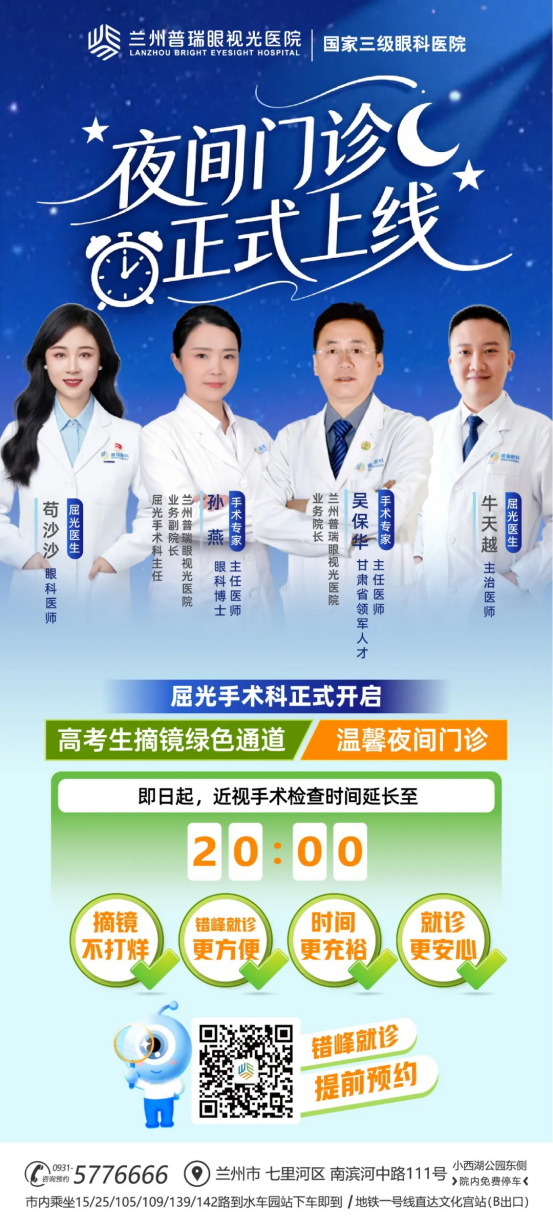专业团队是手术安全与效果的核心保障。在兰州普瑞眼视光医院,“摘镜”从来不是一次性的医疗行为,而是一段贯穿一生的视觉健康承诺。