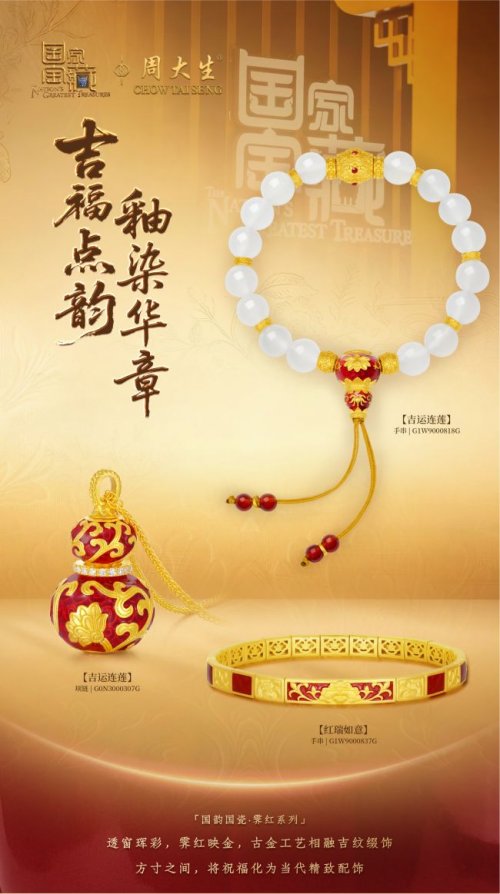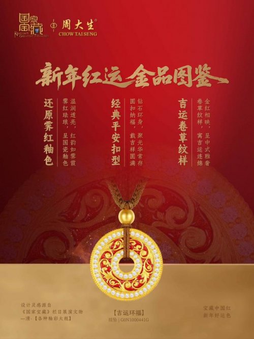 新元肇始,天地焕然。周大生×国家宝藏谨以这凝聚千年智慧与祥瑞祝福的霁红系列,致敬永续的东方美学,并于璀璨金辉与霁红色彩的交融中,与广大消费者共启一个充满文化自信与温情厚意的崭新年华。
