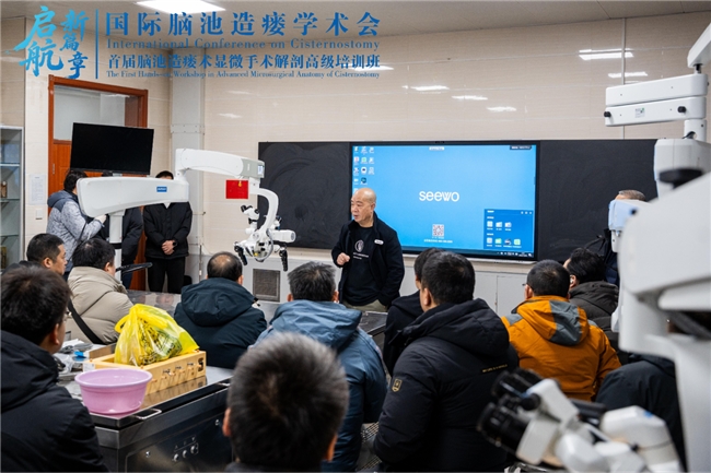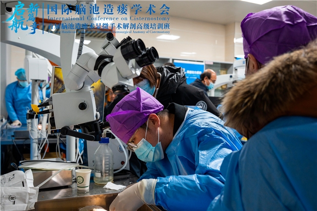 在国际脑池学术会上,苗旺教授对手术解剖的理论知识进行了系统讲解,让学员们对脑池造瘘术在手术理论方面,有了清晰的认知。“生理解剖是基础,对于神经外科显微手术更是如此,术者要清楚的知道每一个手术步骤背后的生理解剖基础”,苗旺教授说道。