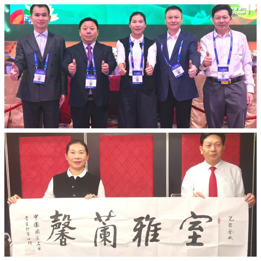 李乘伊院士赠送自己创作的 “ 室雅兰馨 ” 书法作品给四川省巴中市侨联党组书记、主席黄惠女士并合影留念