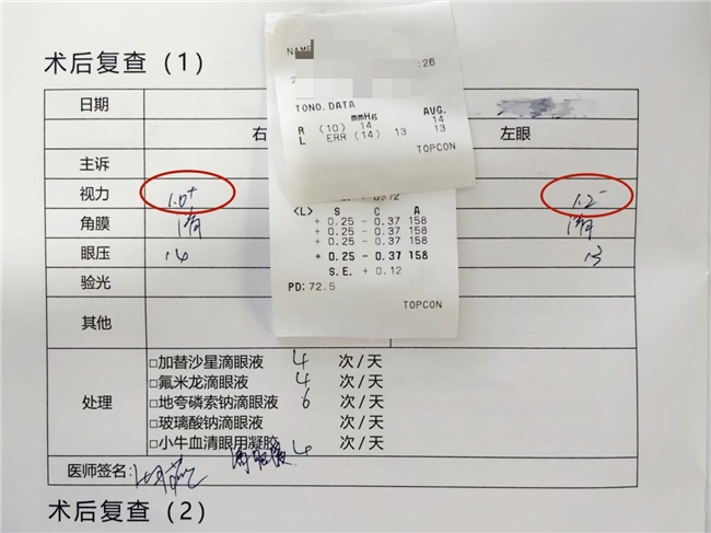 手术最终在张海燕主任及其团队的紧密配合下顺利完成。术后次日复查结果显示,小李的右眼视力达到1.0以上,左眼视力达到1.2-的清晰水平。小李开心的说:“现在看黑板、做题都特别清楚,眼睛也不容易疲劳了,感觉学习效率都提高了。终于可以毫无顾虑地填报我喜欢的专业了。”