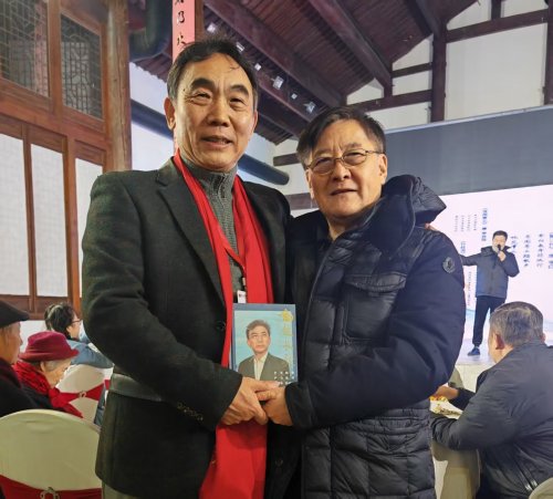 获奖诗人于成安(浮冰)欣然向张景安副部长赠送了诗集《翻越长歌》。
