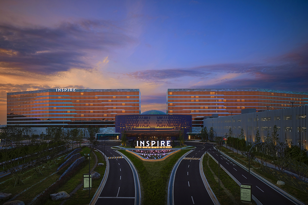 迎仕柏度假城 (INSPIRE Entertainment Resort) 坐落于韩国仁川永宗岛,毗邻仁川国际机场 2 号航站楼的国际商务中心区三期 (IBC-III),是一座集多元度假设施、娱乐元素与顶尖服务于一体的大型综合娱乐度假胜地。迎仕柏度假城完善的配套设施包括提供 1,275 间客房、风格各异的三栋五星级酒店大楼,设有 15,000 个坐席的韩国首个多功能演出场馆、多功能室内玻璃穹顶水上乐园,包含韩国最大的宴会厅的尖端会展设施,体验丰富并能容纳多达 30,000 人的大型户外欢聚公园、长 150 米且拥有巨型LED 屏的沉浸式娱乐街区,以及集购物、餐饮、创新娱乐空间于一体的商业综合体。开业仅一年时间,迎仕柏便已接待逾 400 万访客,奠定了其在韩国作为全球领先综合度假城的地位。