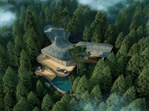 设计匠心打造融于环境自然有机,独特形态与风格,“半山之巅·云端之中’,远离尘世、回归自然身心灵全覆盖的,宝山高端“云端隐世疗愈”隐世酒店。